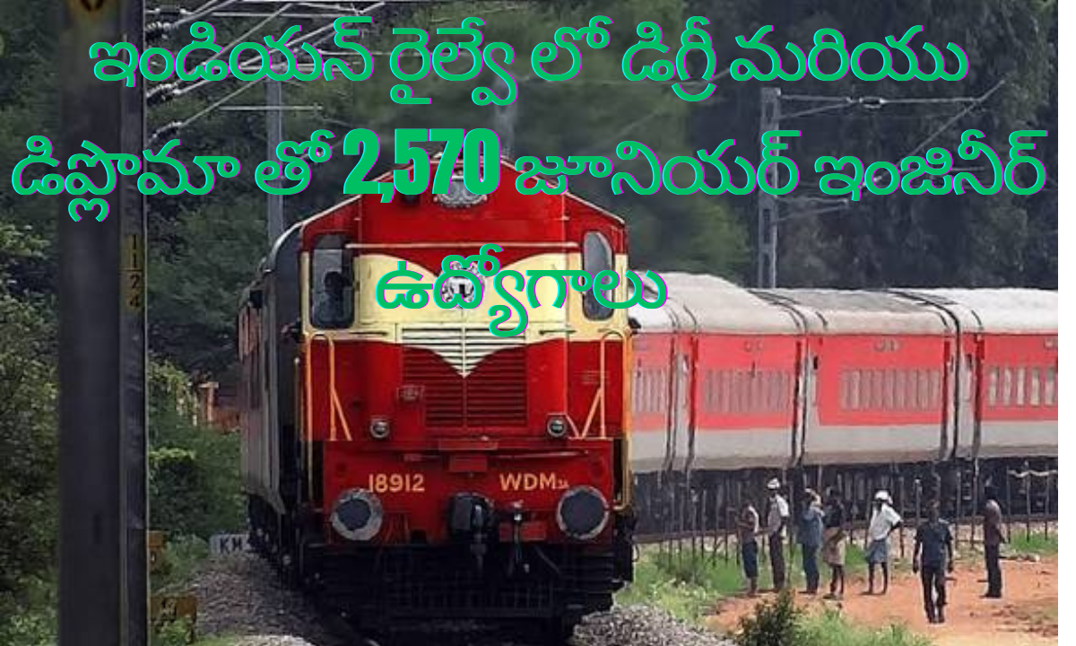 భారత ప్రభుత్వం మరియు రైల్వే మంత్రిత్వ శాఖ డిగ్రీ లేదా డిప్లొమో అయిన అభ్యర్ధులకు రైల్వే రిక్రూట్మెంట్ బోర్డు ద్వారా జూనియర్ ఇంజినీర్, డిపో మెటీరియల్ సూపరింటెండెంట్, కెమికల్ అండ్ మెటలర్జికల్ అసిస్టెంట్ పోస్టులు అన్ని కలిపి మొత్తం 2570 ఉద్యోగాలకు నోటిఫికేషన్ విడుదల చేసివున్నారు. అప్లై చేయడానికి వయో పరిమితి 18 సంవత్సరాల నుంచి 33 సంవత్సరాల వరకు ఉంది. అర్హులైన అభ్యర్ధులు ఆన్లైన్ లో అక్టోబర్ 31, 2025 నుండి నవంబర్ 30, 2025 వరకు అప్లై చేసుకోగలరు.