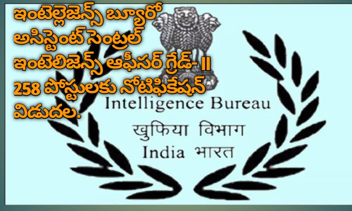 ఇంటెల్లెజెన్స్ బ్యూరో మరియు భారత ప్రభుత్వం అసిస్టెంట్ సెంట్రల్ ఇంటెలిజెన్స్ ఆఫీసర్ గ్రేడ్- II 258 పోస్టులకు నోటిఫికేషన్ విడుదల చేసి ఉన్నారు. మొత్తం కంప్యూటర్ సైన్స్ & ఇన్ఫర్మేషన్ టెక్నాలజీ లో 90 పోస్టులకు గాను, మరియు ఎలక్ట్రానిక్స్ అండ్ కమ్యూనికేషన్ గాను 168 పోస్టులకు దరఖాస్తులు స్వీకరిస్తున్నారు. ఇంజనీరింగ్ లో B.E/ B.Tech పాస్ అయితే చాలు.
