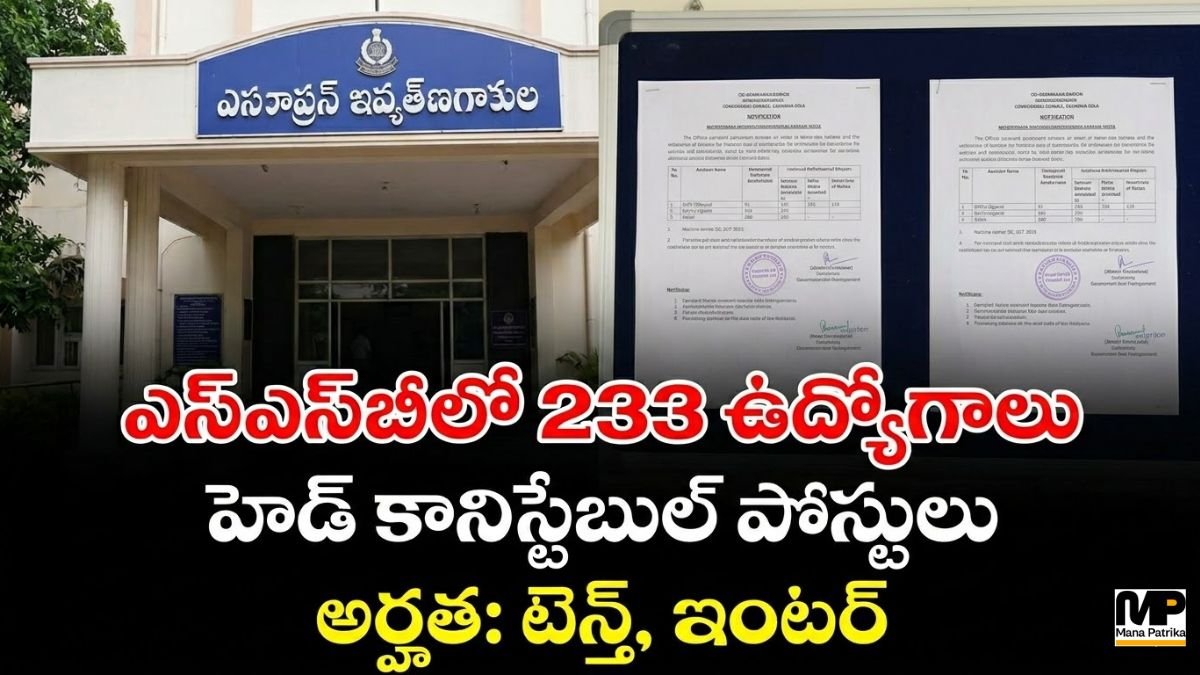 సహస్త్ర సీమా బల్ (SSB), భారతదేశం: కేంద్ర ప్రభుత్వ పరిధిలోని సహస్త్ర సీమా బల్ (SSB) వివిధ విభాగాల్లో 233 హెడ్ కానిస్టేబుల్ ఉద్యోగాల భర్తీకి దరఖాస్తులను ఆహ్వానిస్తూ అధికారిక నోటిఫికేషన్ విడుదల చేసింది.