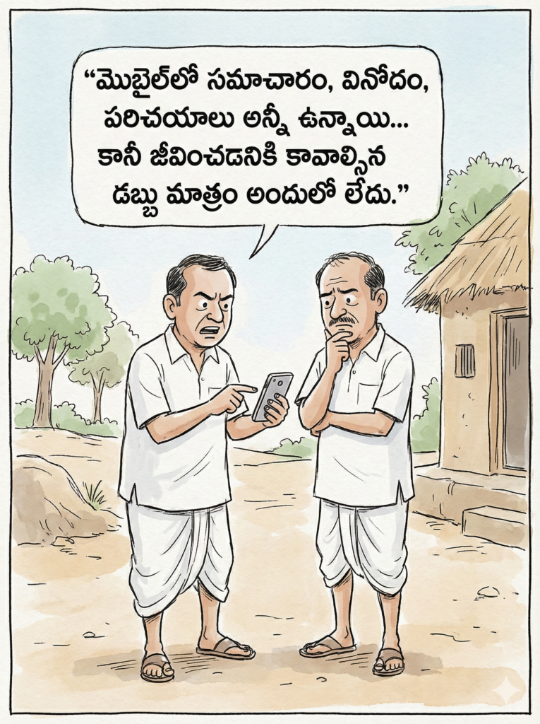 మొబైల్లో అన్నీ ఉన్నాయి… డబ్బు తప్ప! | Telugu Funny Cartoon డిసెంబర్ 20, 2025 by Mana Patrika Deskఇవి కూడా చదవండి : నల్గొండ జిల్లా నాంపల్లి వద్ద రోడ్డు ప్రమాదం: ముగ్గురు మృతి మార్చి 22న రైతు భరోసా నిధుల విడుదల: సిద్దిపేటలో సీఎం ప్రారంభం బెంగళూరు: 2 నిమిషాలు లేటని విద్యార్థికి ఎండలో శిక్ష ఇరాన్ క్షిపణి దాడులు: దుబాయ్ ఎయిర్పోర్ట్ మూసివేత సినిమాను దెబ్బతీయడానికే మోనాలిసా పెళ్లి: దర్శకుడు సనోజ్ Advertisement