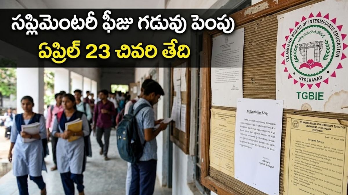 మన పత్రిక: ఇంటర్మీడియట్ విద్యార్థులకు తెలంగాణ బోర్డ్ ఆఫ్ ఇంటర్మీడియట్ ఎడ్యుకేషన్ (TGBIE) ఒక గుడ్ న్యూస్ అందించింది. 2026 సంవత్సరానికి గాను జరగనున్న ఇంటర్ సప్లిమెంటరీ పరీక్షల ఫీజు చెల్లింపు గడువును బోర్డు అధికారికంగా పెంచింది. ఇంతకుముందు ఉన్న ఫీజు చెల్లింపు చివరి తేదీ ముగియడంతో, ఇప్పుడు ఆ గడువును ఏప్రిల్ 23 వరకు పొడిగిస్తూ విద్యార్థులకు మరో అవకాశం ఇచ్చారు.